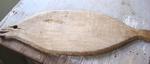 J'ai acheté cette planche-poisson en Suède dans un marché aux puces; elle semble vraiment avoir servi à couper puisqu'elle est en surface recouverte d'une infinité de rayures; j'adore sa forme de phoque ou de gros poisson, elle me rappelle l'art lapon, elle doit provenir du nord du pays. On s'en sert à la maison tous les jours...
