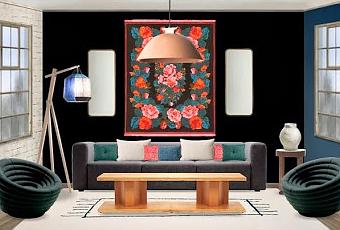 Avec une mise à disposition d'une sélection d'objets choisis parmi les designers tendances du moment, je me suis donc amuser à créer ce petit coin salon en utilisant des meubles de la collection Hay, un tapis de Jan Kath au mur entouré de miroirs de Josef Frank ou encore des lampes d'Ana Kras.