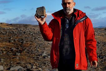 En révolte? Si légitimement je le suis généralement avec une préférence contre la connerie - y a du boulot pour paraphraser Audiard - là sur cette photo je ne le suis pas! Le "pavé" brandi est extrait de Eldgjá ("la faille du feu"), la plus grande fissure éruptive de la planète. Ici, le rift qui parcourt le fond de l’Atlantique apparaît au grand jour : à gauche la plaque Amérique, à droite la plaque Europe. Elles s'écartent de quelques centimètres par an.