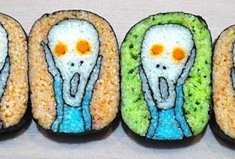 Avez-vous déjà essayé de faire des makis fait maison, sushis et autres rouleaux californiens ? Si ce n'est pas le cas, ayez l'esprit tranquille, un nouvel artiste cuisinier est apparu sur Internet et utilise les sushis comme une toile pour son art. Illustrateur japonais basé à Tokyo, Takayo Chiyota, alias " Tama-chan ", a eu l'idée de créer des œuvres d'art avec des rouleaux de sushi et Chan semble bien savoir maîtriser ce processus très méticuleux ! L'artiste utilise du riz à sushi, des feuilles d'algues et du colorant alimentaire pour façonner son sushi et c'est ainsi que l'œuvre d'art apparaît quand ce dernier tranche le sushi. Il allie professionnalisme, amusement et création d'œuvres d'art célèbres comme Edvard Munch " Le Cri " ou Johannes Vermeer " Fille à la perle ". Il reproduit aussi des dessins de style japonais ou même égyptiens, ainsi que quelques chats ou les symboles Facebook "like". Ci-dessous ses morceaux de sushi d'art qui sont assez impressionnants. Aussi, si vous vivez autour de Tokyo ou envisagez de visiter cette ville, vous serez heureux de savoir que Tama-chan anime des ateliers dans le quartier Omotesando afin que vous aussi appreniez à être un artiste de sushi. Plus d'informations pour vous inscrire sur Time Out Tokyo.
