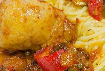 Donc voilà un mélange de poulet basquaise, ratatouille et caponata, servie avec de bonnes pâtes, c’était juste délicieux!