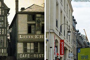 Aujourd'hui nous vous montrons cette même rue des Elus, toujours en autochrome de 1917, mais vue cette fois, de la Place du Forum. C'est l'occasion de redécouvrir les maisons médiévales, dont la célèbre maison dite "de l'Enfant d'Or" à pans de bois.