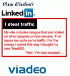 Au dela de l'humour de la formulation, qui indique clairement une intervention humaine, je suis surpris par l'expression choisie: I steal traffic! Dont acte, Xing ne sera plus représenté. Bye bye Xing, chez qui, semble-t-il, l'économie de bout de chandelle réalisée sur une petite imagette a autant d'importance que l'impact d'un lien.