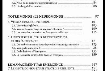 Avant de vous donner des extraits de mon nouveau livre, les Radeaux de feu, prenons d’abord le temps d’expliciter son plan.Comme je l’évoquais dans l’introduction, il est structuré en trois parties.La première, intitulée « Une histoire d’incertitude, d’emboîtements et d’émergences », est une promenade au sein des presque quinze milliards d’années qui se sont écoulés depuis le Big Bang. Elle comprend quatre temps qui correspondent aux quatre étapes essentielles – du moins telles que nous pouvons les comprendre à ce jour – : le temps du minéral, ou « Les poupées minérales : l’expansion imprévisible » ; celui du végétal ou « La vie végétale : l’art du bricolage » ; celui de l’animal ou « Les tribus animales : l’action incertaine » ; et enfin celui de l’humain ou « L’individu humain : le futur anticipé ».La deuxième, intitulée « Notre monde : le Neuromonde », fait un zoom sur ce qui s’est passé depuis moins d’un siècle et qui explique l’accélération de l’incertitude et l’émergence d’une planète de plus en plus synchrone. Elle ne comprend, elle, que deux parties : l’explicitation de ce Neuromonde ou « Vers la connexion globale », puis les conséquences pour l’entreprise ou « L’entreprise au cœur de l’incertitude et des émergences ».Une fois terminée cette analyse, la troisième partie porte sur les conséquences pour le management des entreprises : comment tirer parti de ce qui fait notre monde et sous-tend la dynamique du Neuromonde. Elle comprend trois parties.D’abord, comment construire une stratégie résiliente, car le défi dans les tourbillons actuels est davantage la résilience et la constance, que l’agilité. Cette partie s’intitule « Les matriochkas d’une stratégie résiliente ». Elle commence par rappeler que les débuts sont largement plus le fruit du hasard et de la volonté que celui d’une construction voulue et maîtrisée…Ensuite, comment agir efficacement, c’est-à-dire mettre en œuvre cette stratégie résiliente, tout en s’appuyant sur ce qui advient et n’avait pu ni être prévu, ni souvent même imaginé. Elle s’intitule : « Pour une ergonomie des actions émergentes ». Au cœur, se trouve quelques mots clés : lâcher-prise, simplicité, confrontation, confiance…