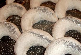 Tcharek Msaker ou bien corne ghzalle, un gateau algerien sous forme de croissant fouré aux amandes et enrobé de sucre glace.