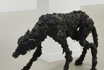 La meute, créée à partir de “moutons de poussieres grises” des humains de passage + structure métallique… de Lionel Sabatté