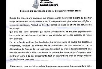 Nous relançons une fois encore les pétitions afin qu'on fiche la paix à ce vieil homme dont le seul tort est définitivement celui de nourrir les pigeons : ce dont se sert la mairie du 4ème pour