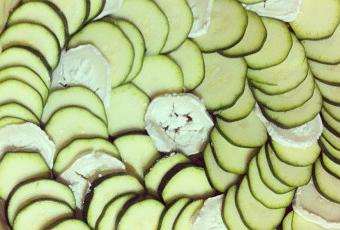 Lavez votre courgette, éplucher là grossièrement et coupez la en très fines rondelles