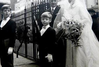 Des détails a priori insignifiants me reviennent à l’esprit : la difficulté à trouver des escarpins blancs en automne, l’humour dévastateur du photographe venu prendre les clichés officiels à la maison avant la cérémonie, le motif brun et or de la robe de ma mère et ses souliers de satin assortis, couleur châtaigne, la broderie bleue à cabochons le long de l’encolure de celle de ma belle-mère, mon père, si élégant dans sa jaquette gris foncé, les costumes « Eton » de mes neveux garçons d’honneur, réalisés par leur mère. Quand je les revois, deux anges blonds si sérieux, je ne peux m’empêcher de penser aux hommes qu’ils sont devenus : l’un est un as de l’informatique et sert dans l’une des entreprises françaises du secteur les plus brillantes à l’international, l’autre a fondé une clinique vétérinaire dans le sud de la France … les travaux réalisés autour de l’autel et les grandes feuilles de plastique transparent qui obturaient presque la nef de l’église, me faisant penser au rideau du Temple de Jérusalem … Comme le temps passe !