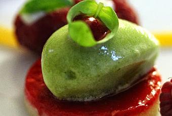 Quand je suis passée, il y avait encore des framboises. J'ai dégusté une des plus belles créations du chef : framboises fraîches, calisson à l'orange, fromage blanc acidulé et sorbet basilic. C'est un dessert à l'assiette que l'on peut déguster au restaurant de l'hôtel, le Baudelaire.