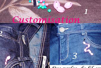 On a toutes un jean qui traine que l’on ne met plus, ou peu. On n’aime plus sa tête, on a oublié pourquoi on l’a acheté bref, on a envie de le zapper et de s’en offrir un autre. Un qui a plus de gueule ou ce petit truc qui change de l’ordinaire. Des perles par ci, des coutures en or par là, des clous aussi.