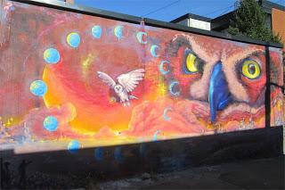Lors de mes tournées de printemps sur les nouvelles murales urbaines, je n'avais pas remarqué celle-là, montrant un imposant robot (qui occupe tout l'arrière d'un édifice de plusieurs étages), avec des détails fort intéressants (sur Clarke au sud de Mont-Royal).
