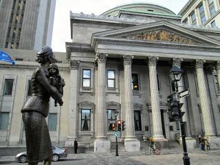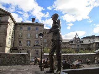 Il n'y a pas que les murales qui offrent des nouveaux visages à Montréal. J'ai eu la surprise de découvrir, directement sur la Place d'Armes, deux nouvelles grandes sculptures, dont celle-ci, intitulée «Poodle Français». La plaque ne mentionne ni l'identité de la dame au masque allongé sur le nez, ni le rôle de celle-ci ou de son chien.