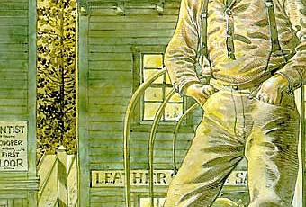 Hermann est de ces sages tranquilles de la bande dessinée, qui transmettent tout l’être humain du bout de leur crayon. C’est par le souci du détail, l’anatomie exaltée, les ombres crispées et toute la gravité des visages dont il n’a pas peur de montrer les défauts et les imperfections, qu’il se prive bien de lisser ; qu’il parvient à user de toute la supériorité de l’image sur les mots. De son pinceau aiguisé, aux couleurs rares mais ô combien précieuses de par cette parcimonie, il sait représenter tout le réalisme de l’Homme en ne dédaignant aucun aspect, du plus noble au plus animal. Hermann sait ainsi nous alerter sur tous les détails qu’il prend soin de semer et ne s’encombre jamais d’un classicisme liberticide dans son travail, comme si l’Ouest dormait en lui… C’est alors un récit rythmé par les colts et les sabots, par les regards et les coups qu’il nous offre, usant de toute sa générosité d’artiste troglodyte qui sait juste partager les sentiments les plus déroutants. Nichés au creux d’un cœur d’adolescent, c’est ébranlés que nous finirons ce voyage dans le temps, on ne reste jamais indifférent quant on assiste à la mort d’une civilisation.