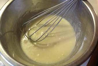 Mélanger dans un cul de poule les blancs d’oeufs, le sucre, la farine, le sel et les amandes grillées.