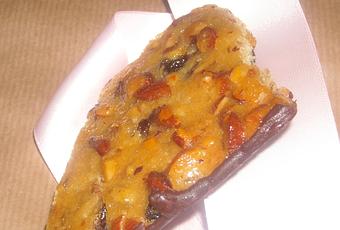 Quand le mélange est fondu, ajoutez les fruits confits découpés en petits morceaux, les amandes, la farine et touillez bien bien bien!