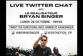 Les fans du monde entier sont invités à participer au Live Twitter Chat avec Bryan Singer, réalisateur de « X-MEN: DAYS OF FUTURE PAST ». L’événement se tiendra lundi 28 Octobre à 18h30 sur la page Twitter de Bryan Singer et sera diffusé simultanément sur la page Twitter officielle X-Men Movies . N’oubliez pas d’inclure #XMen et #AskSinger dans vos tweets.