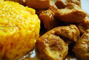 Servir le Curry de poulet masala avec du riz.Safrané.