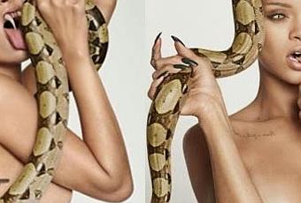 Rihanna pose encore nue ! Cela en devient presque banal alors pour changer, la belle s'est dernièrement fait photographiée par Damien Hirst avec un serpent histoire de changer un peu.