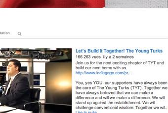 Qui a dit que les jeunes ne s'intéressent pas à la politique ? Emise chaque soir depuis les studios Youtube Space de Los Angeles, l'émission de Cenk Uygur, The Young Turks, fédère quotidiennement près de 500 000 téléspectateurs. La moyenne d'âge : les moins de 35 ans ! Dérangeant, impertinent et profondément militant, le programme a comme ambition de "porter le fer contre l'establishment et les médias officiels". Dans le style, Cenk Uygur n'a rien à envier à Yann Bathès du Petit journal de Canal +. Il commente l'actualité de manière décalée, en mettant dos à dos les politiques et ses confrères journalistes des grandes chaînes de télévision. Un récent appel aux dons a déjà permis de dégager, en l'espace de 15 jours, près de 65 000$. L'objectif : pouvoir intégrer à terme un nouveau studio.