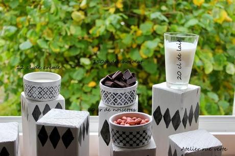 La recette Les ingrédients :20 cl de lait12 cl de crème 80 gr de noisettes 150 gr de chocolat