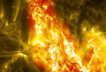 Tout ce qui apparait en rouge « souligne le plasma à une température 50 000° C ce qui est très bien pour observer la formation et l’éclatement des filaments » explique Karen Fox du GSFC (Goddard Space Flight Center) qui a collaboré à la réalisation de ce montage vidéo. « Les images jaunes, montrant des températures à environ 550 000° C, sont très utiles pour observer la matière filant le long des lignes de champ magnétique du soleil, visibles dans le film comme une arcade de boucles magnétiques dans la région de l’éruption. » Enfin, ce sont les images de couleur brune révélant la matière chauffée à plus de 1 000 000°C, au début de la vidéo, qui mettent le mieux en évidence le canyon de feu.