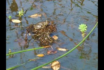Cette grenouille est de surcroit peu sonore, et ce pour deux raisons : seules les femelles semblent chanter, puisque j’ai cru comprendre que les mâles étaient dépourvus de sacs vocaux. En outre, le chant, généralement nocturne, a lieu au plus profond de la mare, et est donc assourdi par l’eau.
