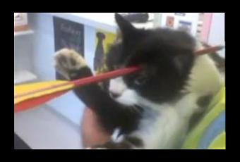 Moomoo, ce chat résident en Nouvelle-Zélande et âgé de 4 ans aurait reçu une flèche de tir à l‘arc en pleine tête et s’en est sorti indemne.