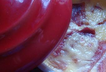 Versez la préparation dans 4 mini cocote beurrés et faites cuire. a four chaud, 15 a 20 mn au bain marie.