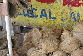 En Inde, à de nombreux coins de rue, des marchands ouvrent des noix de coco et l’on peut alors boire de l’eau de noix de coco fraîche.