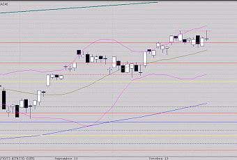 Sa position, après 8 séances passées à proximité du support des 4256 points n'est pas plus favorable, à l'image de la dernière bougie noire, à la formation d'une figure baissière.