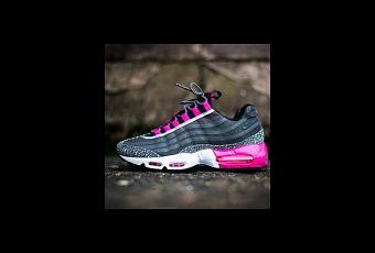 Découvrez ces nouvelles Nike Air Max 95 PRM Tape Midnight Fog-Pink Foil qui viennent de sortir chez Sneaker Politics et ne devraient pas tarder à arriver sur le Nikestore.