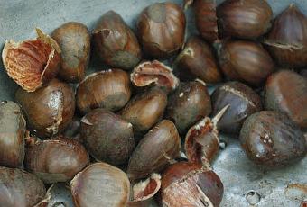 Il y a bien sûr les châtaignes que l’on peut acheter, crues ou déjà grillées. Elles sont alors plus grosses que celles qui sont ramassées dans nos bois brabançons. Leur goût est peut-être plus subtil. Je ne sais pas. Ce qui me plaît, c’est de ramasser ces fruits secs fournis en abondance par nos arbres et de les déguster ensuite, sans frais, juste pour le plaisir du goût.