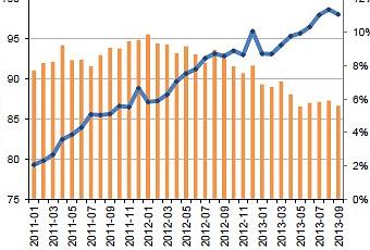 D’une part, comme l’indique ce graphique, on note … une petite déflation (en fait, un ralentissement de l’accroissement, pour être plus précis) :