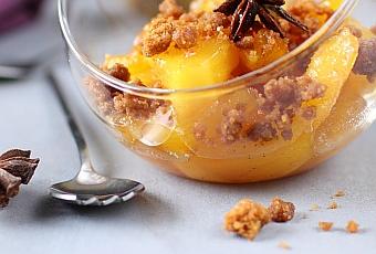 7- Servez les morceaux d’ananas tièdes et ajoutez par-dessus le crumble de spéculoos.