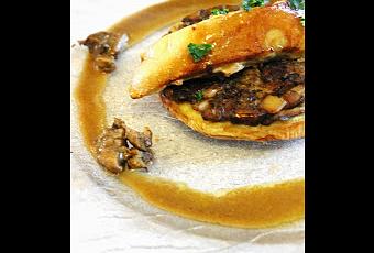 D'un garage (en électricité auto) arborant (au titre de l'enseigne) un Saint-Christophe (le Saint patron des voyageurs), le sieur Léopold Bonnet, en 1936, allait poser la « première pierre » d'une brasserie à la Parisienne, ou à la Lyonnaise, et Marcel Arnaud, peintre Provençal, et directeur de l'école des Beaux-Art, de créer huit toiles présentes encore aujourd'hui dans les lieux. Un style (très) années 30 revisité, de l'opacité dans le verre, des coins et recoins calfeutrés, des bronzes dévoilés, des miroirs répétés à l'envi, et, à 13h, une salle comble où il sera bien difficile d'extirper une table pour trois. Antonela, la rousse serveuse, se débrouillera pour nous en dresser une prestement ... (tandis que l'autre s'en moquera délibérément). La Tatin de cèpes frais et foie gras légèrement poêlé (impeccable), savoureuse et ensorceleuse, la salade de roquette, grand copeaux de Parmesan, et le marbré de foie gras mi-cuit et figues, un poil insipide (manque de sel) et pourtant généreux, marqueront de leurs empreintes non falsifiées un instant séduisant à plus d'un titre.