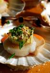Comme des coquilles Saint-Jacques à la RouxIngrédients : 4coquilles Saint-Jacques nettoyées avec la coquille du dessous - 40 g de beurre à température ambiante - 10 g de noisettes en poudre - 10g de noisettes entières hachées - 1 càs de ciboulette ciselée et quelques tiges hachées de plus pour saupoudrer dessus – sel et poivre