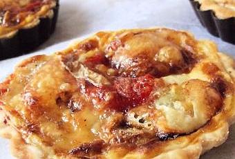 Voilà de délicieuses tartelettes fromagères qui nous ont régalés ! Je les ai réalisées avec le reste de pâte de ma tarte aubergines confites, chorizo et champignons.
