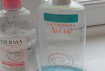 Ensuite, je passe un coton imbibé de la lotion micellaire pour peaux sensibles de la marque Bioderma. Je l'applique pour enlever le calcaire de l'eau présent sur ma peau.