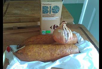Tout d'abord, afin de lui donner une qualité supérieure, il va de soi qu'il faudra privilégier les lentilles vertes AOP du Puy en Velay, cette région chère aux lentilles, et donc par conséquent des saucisses aussi de qualité.