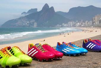 A 218 jours du début de la Coupe du Monde de football au Brésil, Adidas a décidé de frapper un grand coup en lançant le Samba Pack: une collection de chaussures de football aux influences brésiliennes visant à honorer l’énergie et l’extravagance de la nation hôte de la CM2014. Ainsi, la marque aux 3 bandes a décidé de faire dans le fluo.