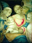 brillance de la soie. La manière de couleurs et contrastes est typique des compositions de Ricci Giovanni Pietro Pedrini dit Giamp(i)etrino (1493-1540) ; elle est renforcée par les effets de la soie.