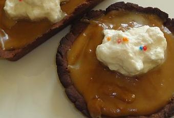 Disposez une quenelle de crème sur la tartelette. Placez à nouveau au réfrigérateur 30 minutes. Au moment de servir, saupoudrez de cacao. (j ai mis du décor sucre vermicelles)