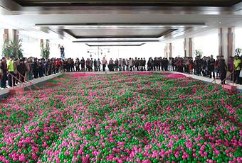 Le Kerry Hotel de Pudong, un district de la municipalité de Shanghai en Chine vient de remplir (le 30 octobre) sa piscine de 25 mètres avec 1 million de balles en plastique vertes et roses. Une opération de communication dans le cadre des campagnes de sensibilisation au cancer du sein « Pink October ». Cette installation est à présent inscrite dans le Guinness World Records en tant que plus grande piscine à balles.