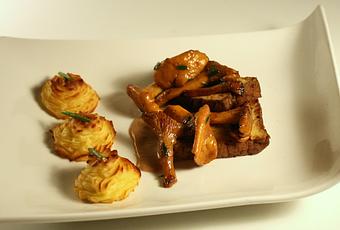 - Disposer les tranches de tofu sur les assiettes, les champignons dessus, les pommes duchesse à côté. Terminer par verser la sauce.