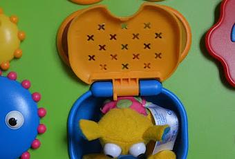 Là, le choix est large. Ici, j'ai mis les jouets préférés de minifée. Le petit pirate est le grand favoris. Elle l'a depuis sa naissance et l'aime beaucoup. Il y a des grelots dans la tête du pirate, il fait donc du bruit quand on l'agite.