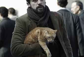 Le matou en question appartient aux Gorfein, un couple de bobos new-yorkais amateurs de musique folk. Souvent, en revenant de concerts donnés dans les bars de Greenwich Village, ils acceptent d’héberger Llewyn Davis (Oscar Isaac), un musicien sans le sou qui tente, en vain, de vivre de son art dans le New York des années 1960. Mais un matin, alors qu’il s’apprête à quitter le domicile de ses amis, le chat facétieux se fait la malle. Llewyn parvient à le rattraper, mais, n’ayant pas les clés de l’appartement des Gorfein, il ne peut pas y déposer le félin.