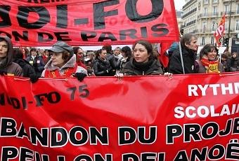 Et, à Paris, les syndicats enseignants SNUipp-FSU, SNUDI-FO, Sud Education, CNT-Ste, CGT Educ’Action et le syndicat FO des personnels de la Ville de Paris appellent en commun l'ensemble des enseignants et personnels municipaux à la grève pour "l'arrêt du dispositif actuel" et "l'abrogation du décret du 24 janvier 2013"