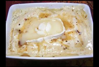 Remettre des feuilles de lasagne, puis de nouveau crème/lardons, chèvre et miel.
