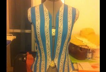 A l'heure actuelle, le corsage est fait, mais il manque encore les agrafes sur le devant. J'ai aussi une jupe non ourlée. Il manque donc la chemise qui va sous le corsage, et le tablier.